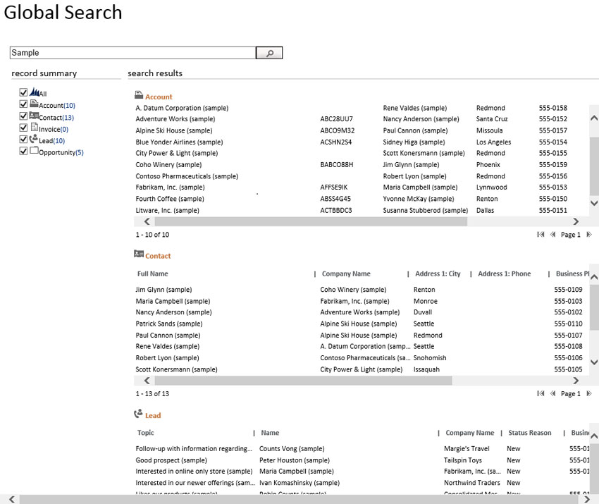 Global Search is an add-in component developed to address specific needs for Microsoft Dynamics CRM 2011, CRM 2013 and Online