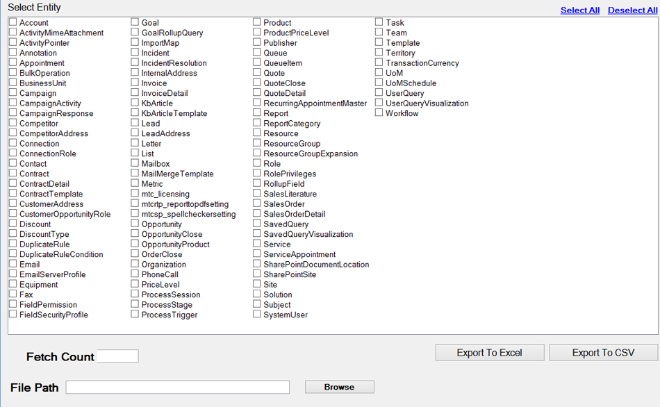 With MTC's Microsoft Dynamics CRM Export Data Tool, users can be sure that the most important data stored in the Microsoft Dynamics CRM is exported to the desired output such as Excel file or in to CSV file format.