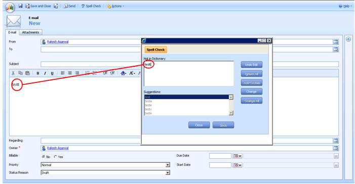 Most Languages Available! Spell Checking from the CRM web client ...| Spell Checker is implemented to all Microsoft Dynamics CRM "Activities" and "Templates" including: | ||